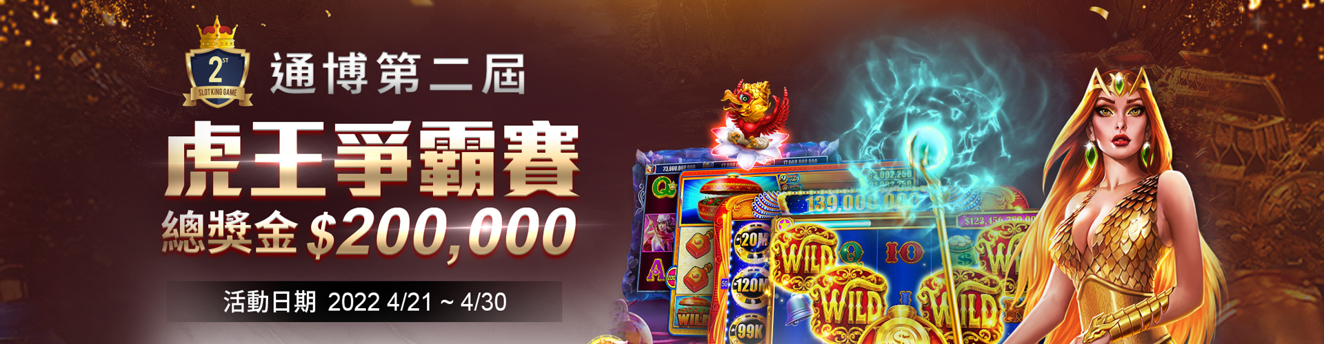 2. 本活動僅限老虎機平台(BNG、PLS、SP、RTG、ifun、TC、PNG),捕魚機投注不列入計算。有效投注累積時間為2022/4/21(四)00:00:00至4/30(六)23:59:59。
